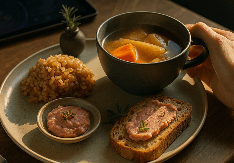 朝の光が部屋に差し込む頃、わたしのキッチンでは「まだ話してもいない一日」が、すでに始まっている。感応型の朝食ユニットが、わたしの睡眠状態や夢の記録、今朝の神経活動の波長を読み取って、最適な食材を提示してくれる。もちろん、