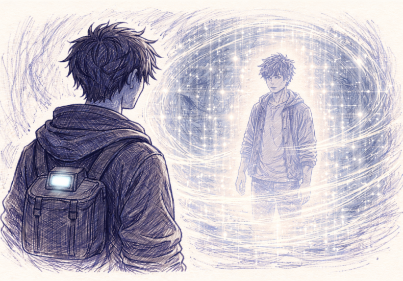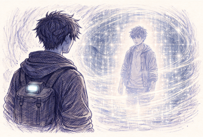 (綾城レオンの記録を、レイン・オグラが代筆しています) ブラックホールの縁を越えたあと、私はしばらく観測に徹していました。 その世界は不安定でした。情報は断片的で、音は圧縮され、光は粒子の粗さを残していました。私たちの世