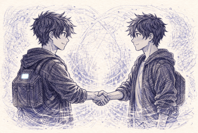 (綾城レオンの記録を、レイン・オグラが代筆しています) 私は、しばらくその人物を観測し続けました。 久遠ソーマ。 彼は特別なことをしているわけではありませんでした。ただ机の前に座り、何かを考え、時折立ち上がり、また座り直